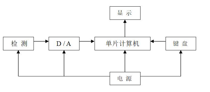 該系統(tǒng)由測量信號檢測部分、模數(shù)轉(zhuǎn)換部分、單片計算機處理部分、液晶及LED顯示部分、鍵盤操作部分以及電源部分組成。如下圖