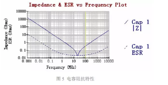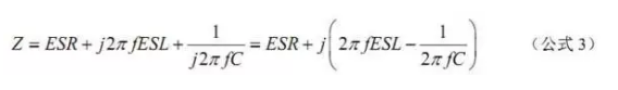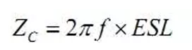 當頻率處于電容自諧振點以下時,電容的阻抗可近似表示為: