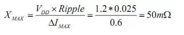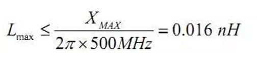如果希望電源系統(tǒng)在 500MHz 以下時都能滿足電壓波動要求,就必須控制電容的 寄生電感。必須滿足 2πf×Lmax≤XMAX ,所以有: