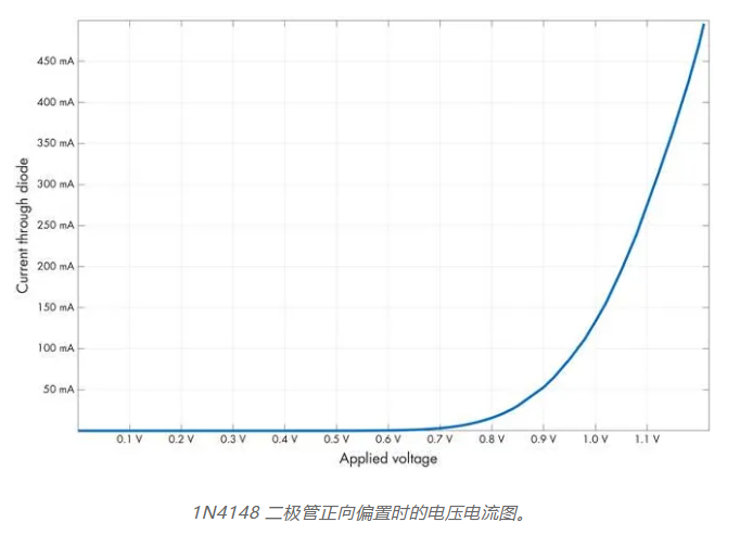 傳統(tǒng)的二極管就是一個(gè) p-n 結(jié)。該元件可以被認(rèn)為是一個(gè)基本的電壓控制器件:當(dāng)電壓低于某個(gè)閾值時(shí),它表現(xiàn)出非常高的電阻:通常超過(guò) 100 kΩ,因此幾乎沒(méi)有電流可以通過(guò)。當(dāng)超過(guò)該閾值時(shí),二極管開(kāi)始允許更可觀的電流通過(guò)。V-I 曲線最初是指數(shù)型的,但很快,材料的固有電阻開(kāi)始占主導(dǎo)地位。從那時(shí)起,電流與“多余的”施加電壓大致呈線性關(guān)系: