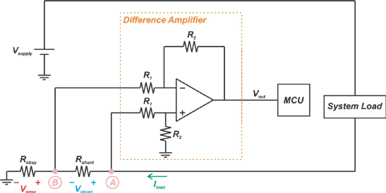 由于差分放大器的差分輸入檢測(cè)Rshunt上的電壓,PCB走線(xiàn)的電阻不會(huì)產(chǎn)生誤差。我們將在以后的文章中更詳細(xì)地研究差分放大器配置。
