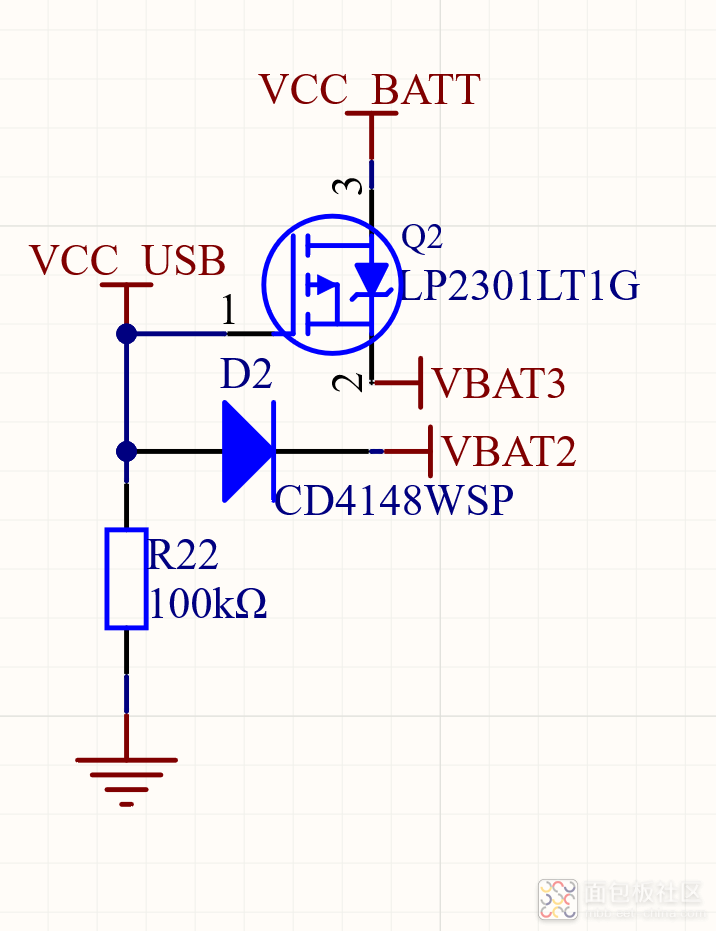 USB供電過來后到VBAT2,直接繞過控制PMOS就可以。