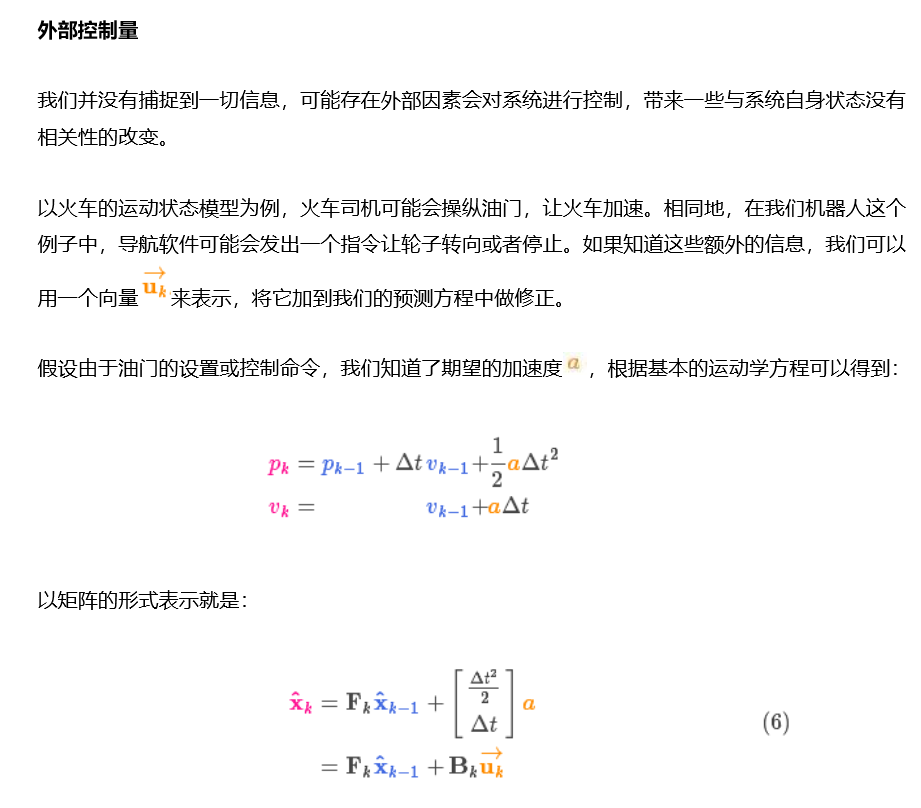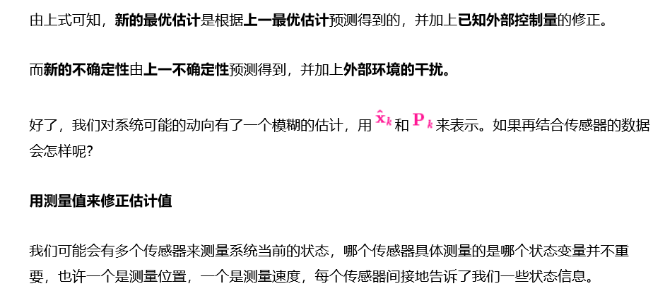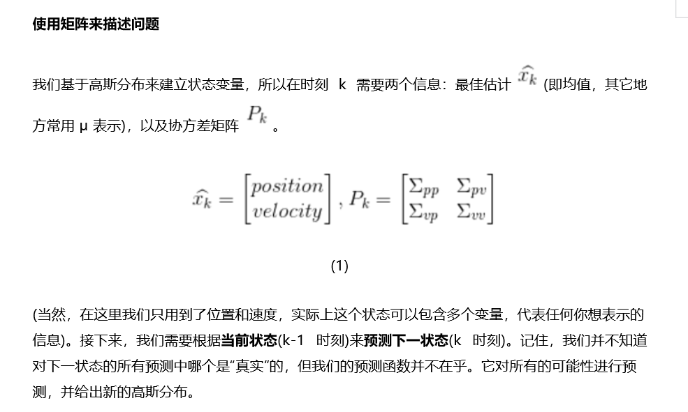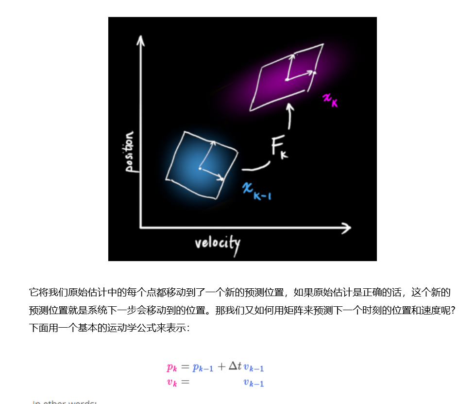 注意這個狀態(tài)只是關(guān)于這個系統(tǒng)基本屬性的一堆數(shù)字,它可以是任何其它的東西。在這個例子中是位置和速度,它也可以是一個容器中液體的總量,汽車發(fā)動機的溫度,用戶手指在觸摸板上的位置坐標,或者任何你需要跟蹤的信號。