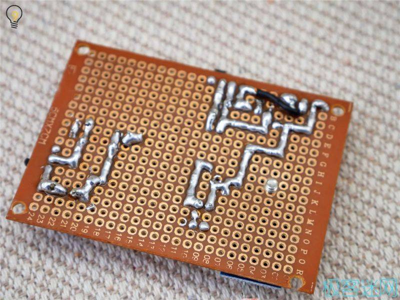 5.如圖,將所有元器件安置到位,盡量將飛線之類的東西藏到板子背面(銅箔面)使得正面盡量簡潔。