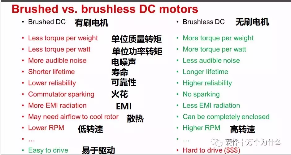 ti的一個(gè)介紹視頻關(guān)于有刷電機(jī)與無(wú)刷電機(jī)的對(duì)比,如下圖所示,很完整。