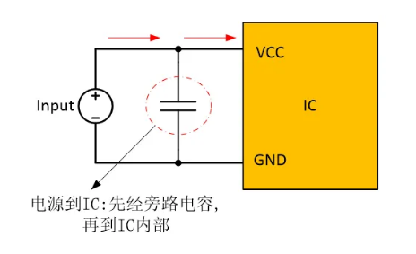 在電源和IC間增加旁路電容,以保證輸入電壓穩(wěn)定并濾除高頻噪聲。