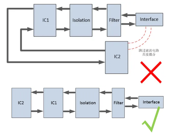 串擾: 設(shè)計線路平行走線距離過長時, 導線間的互容、互感將能量耦合至相鄰的傳輸線??梢酝ㄟ^以下方法減少串擾影響: