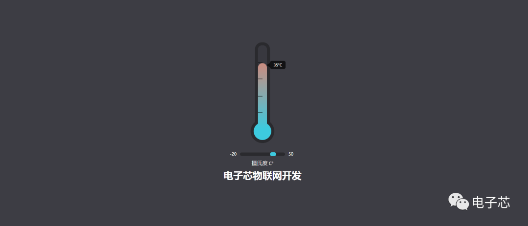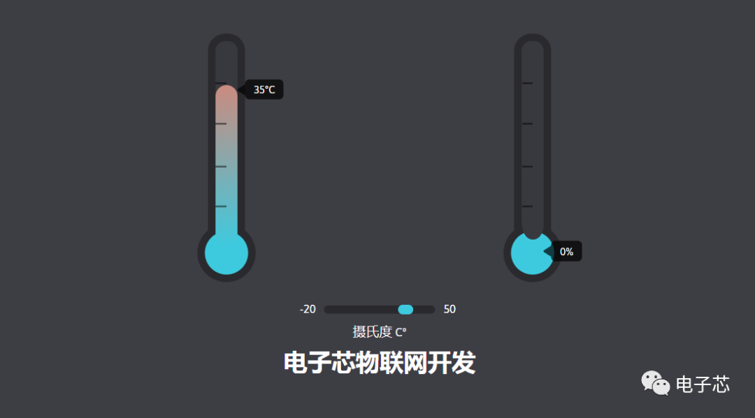 如下段代碼是前段的溫度計(jì)界面,這個在前面的物聯(lián)網(wǎng)WiFi溫度監(jiān)控中有提到過。這次需要復(fù)制出來顯示濕度,形成溫濕度的監(jiān)控。