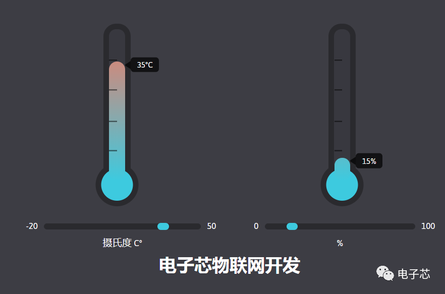 查閱資料,在原本的代碼外圍增加div,并且設(shè)置style="float:left;width:200px;",其中float:left;是讓第一個溫度計(jì)居左,width:200px;是這是溫度計(jì)的寬度,否則兩個溫度計(jì)會挨的特別近。